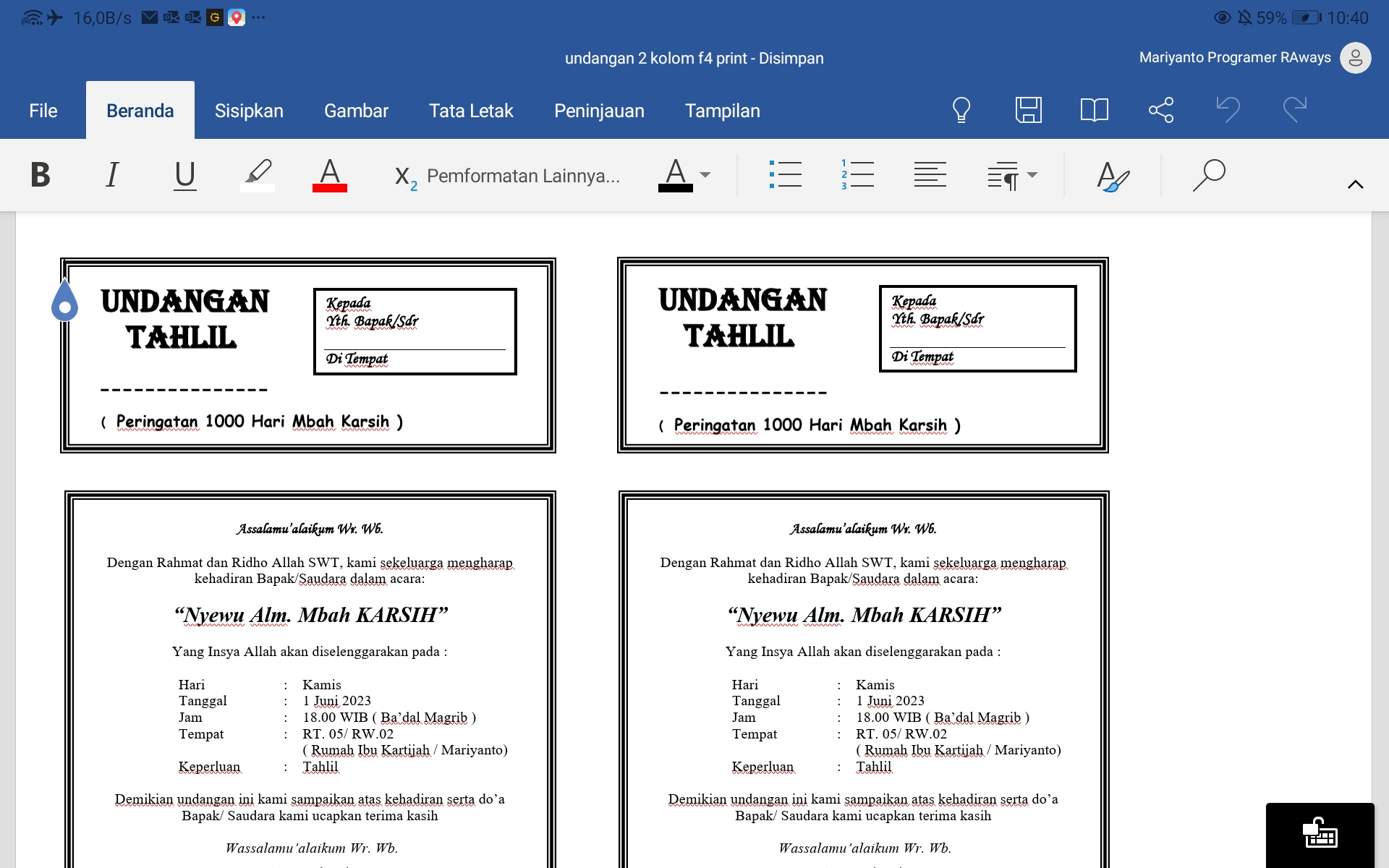 Cara Membuat Surat Undangan Tahlilan 1000 Hari Di Android